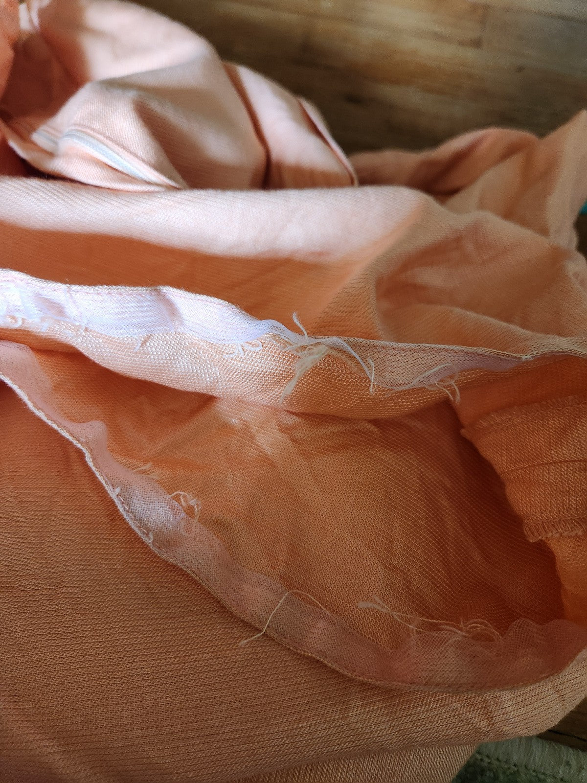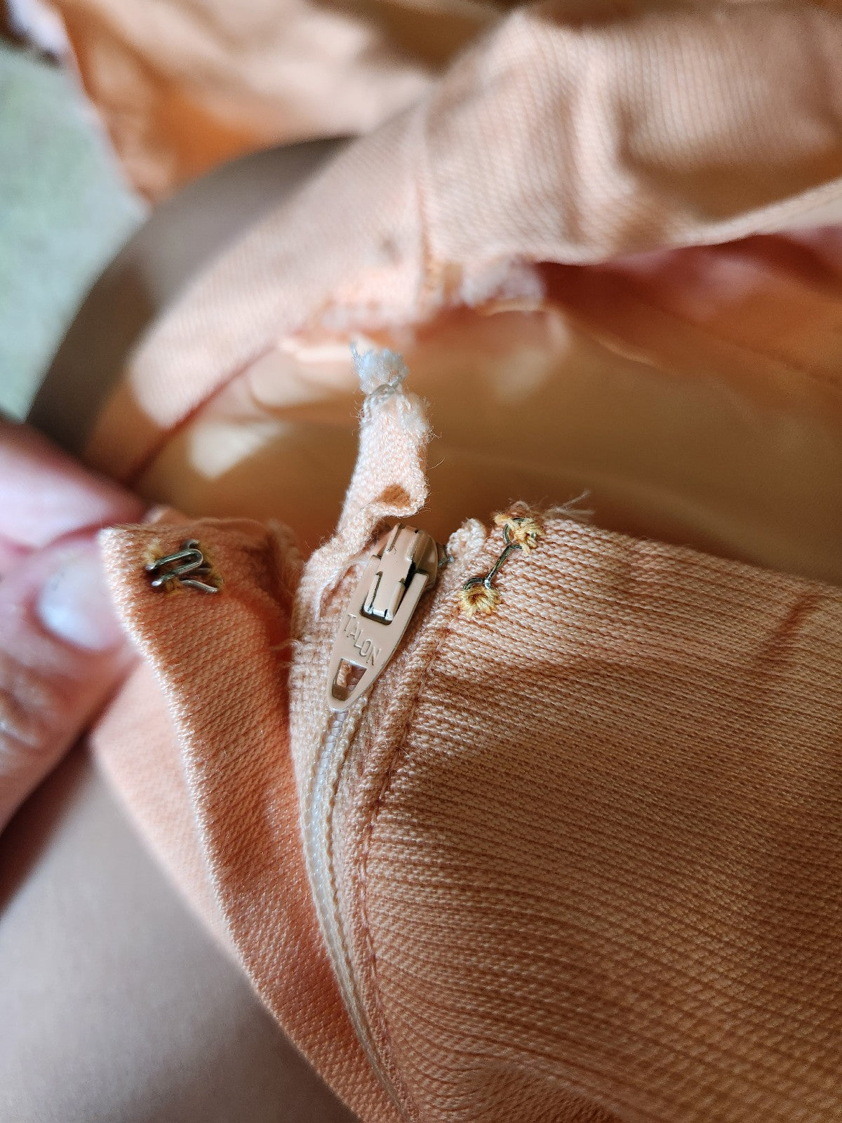 This garment came to me in need of a wash and it has been washed, line dried, and steamed, but is extremely wrinkle prone.