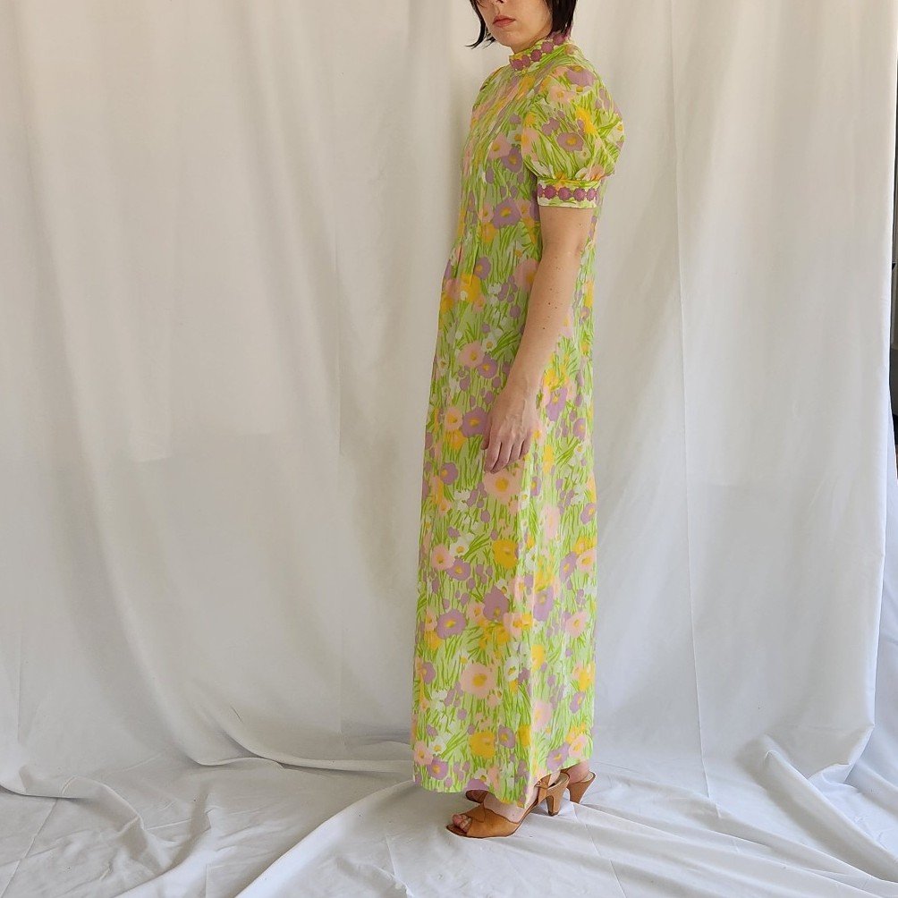 60s/70s Hand Made Floral High Neck Maxi Dress