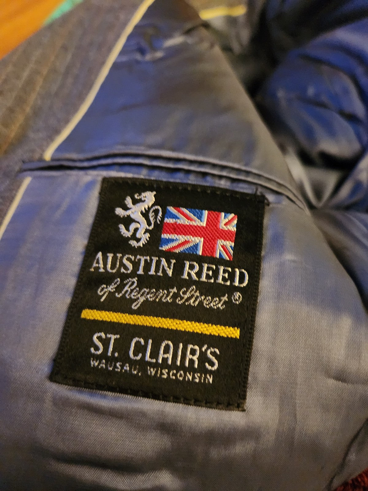 This classic wool suit is in good condition but I am optimistic that a dry cleaner can help with the stains, likely from food.