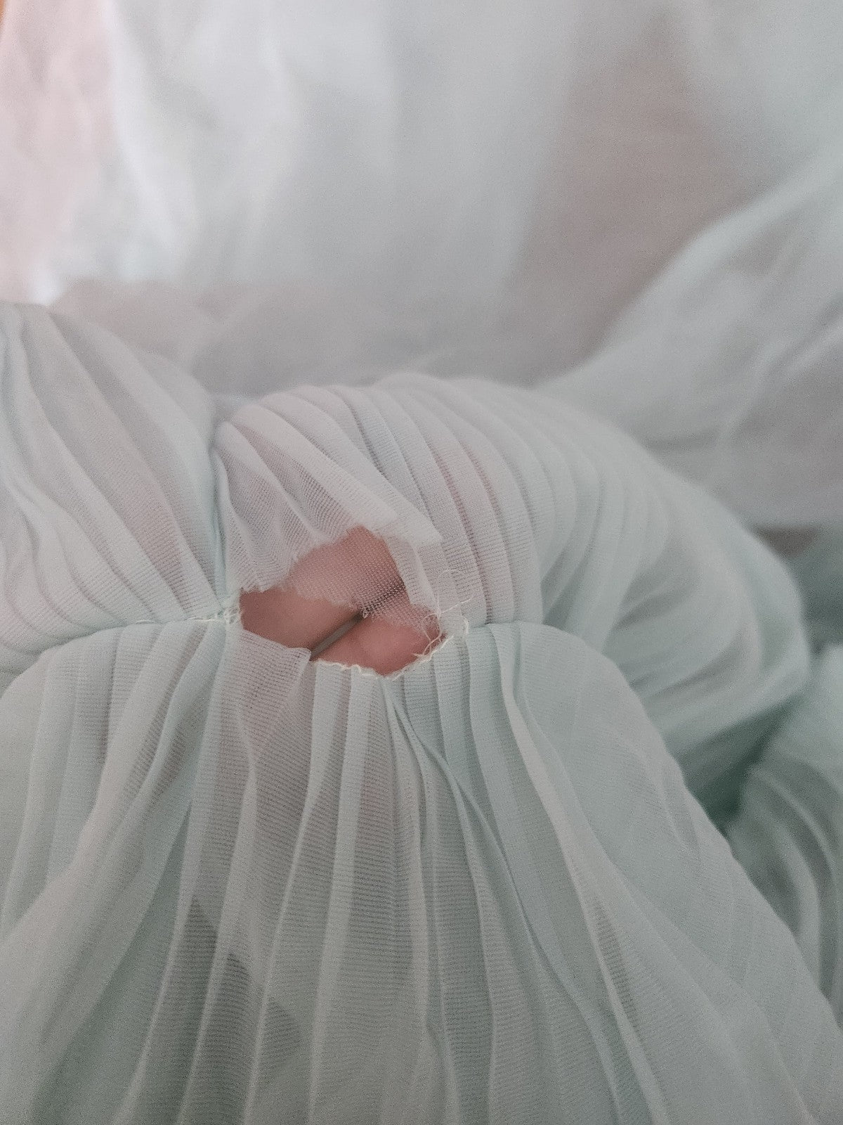 This beautiful robe is in very good condition. It came to me with a stain that I was able to get out in the wash.