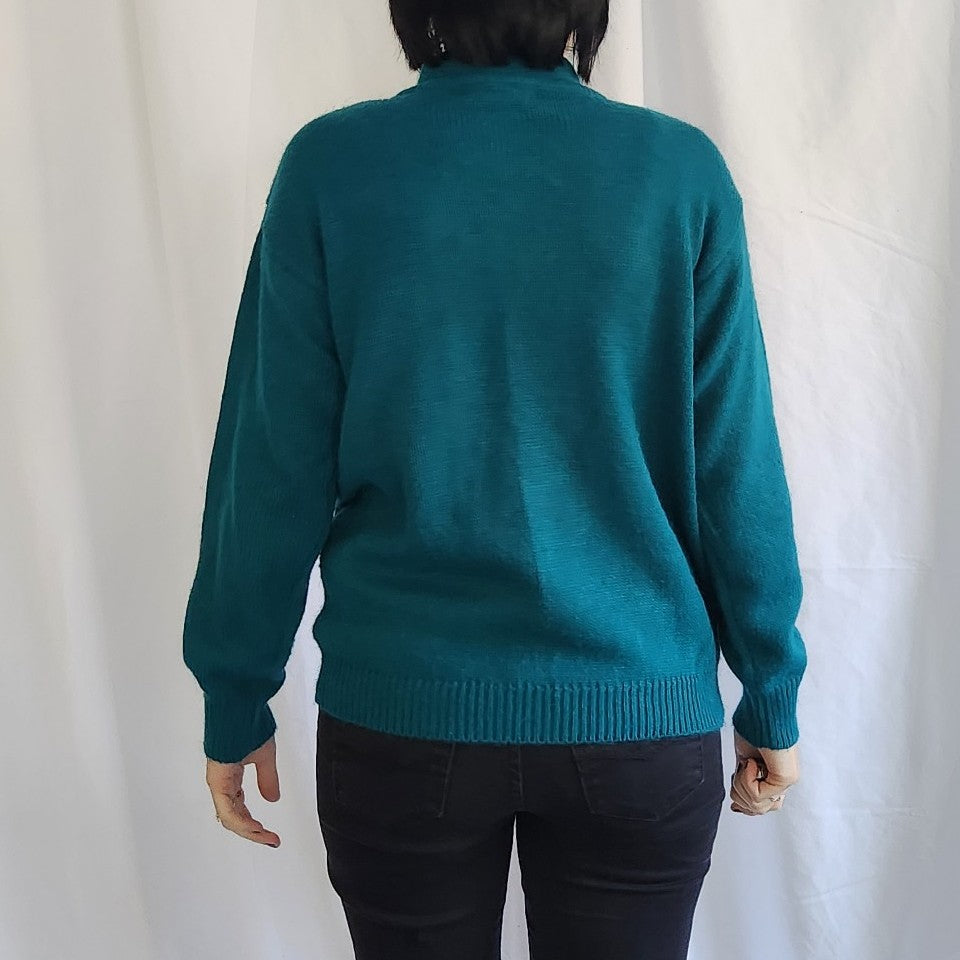 This pretty and cozy sweater is in very good condition. Has some mild pilling, typical of acrylic knits.