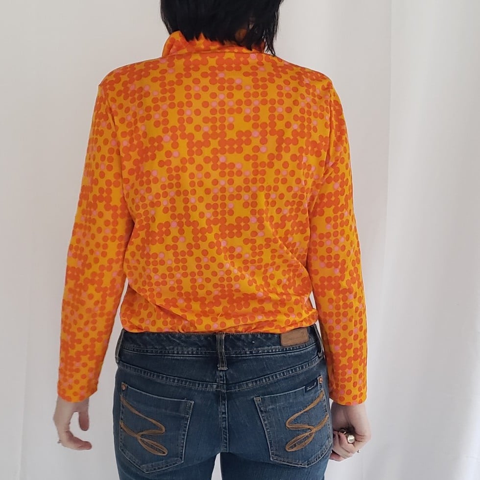 70s Orange Polka Dot Dagger Collar Shirt