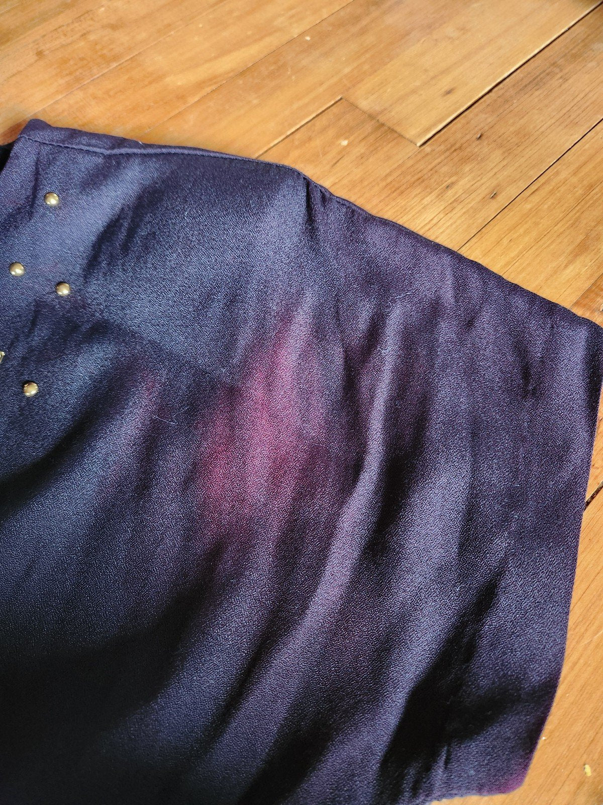 This rayon and acetate Jumpsuit is in excellent structural condition but has discoloration at the armpits, likely from the fabric reacting to antiperspirant. I do think the discoloration shows brighter in the pictures of it than it does in real life.