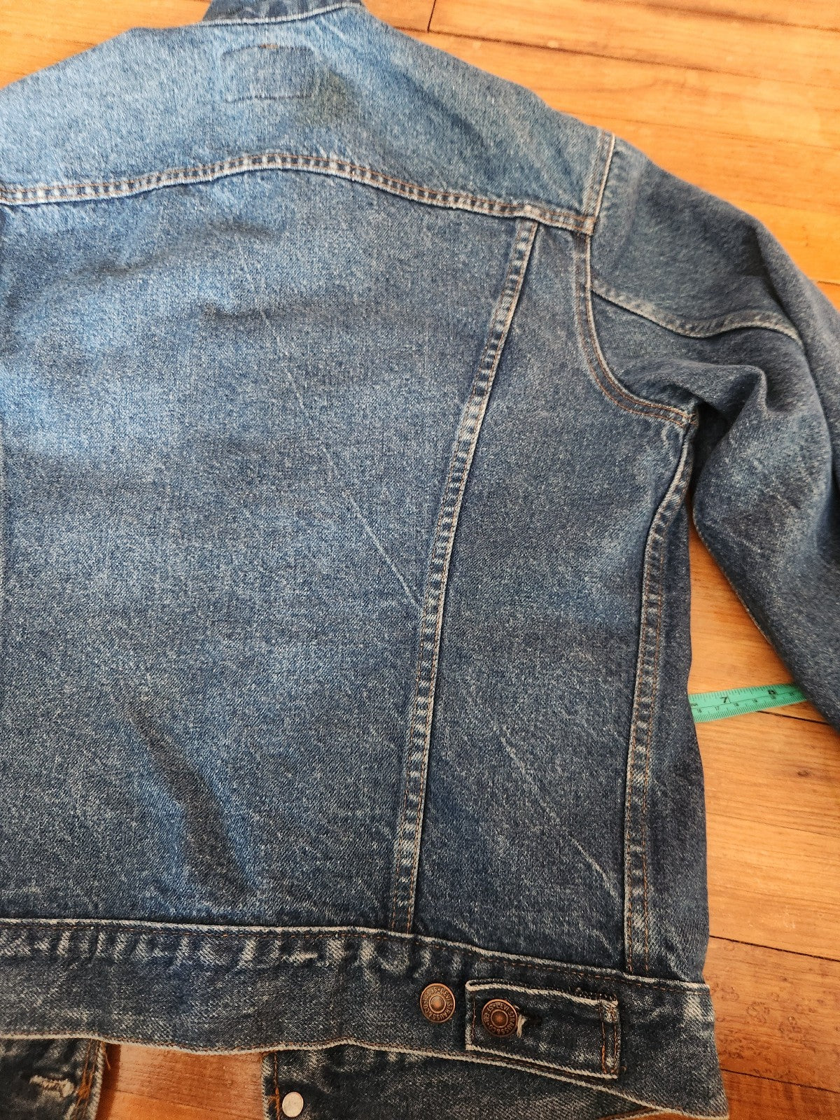 This classic jacket is in great condition. Has a few loose threads where they were not trimmed up during the sewing process that I am leaving as-is is.