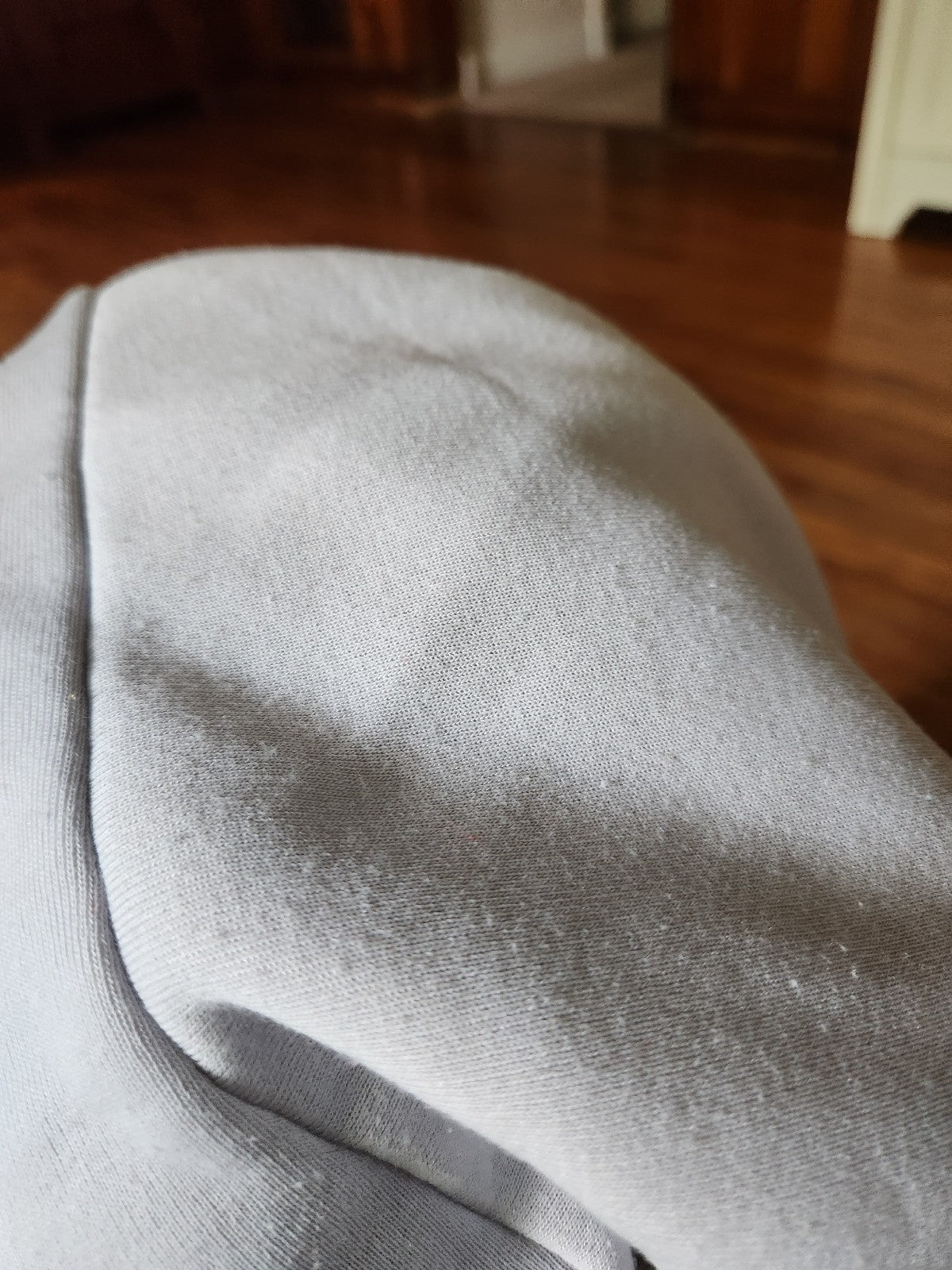 This cozy sweater is so soft inside that it feels new, however the outside has super mild pilling, typical of acrylic fabrics.