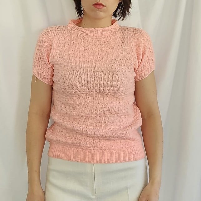 80s(?) Pink Hand Knit Short Sleeve Sweater