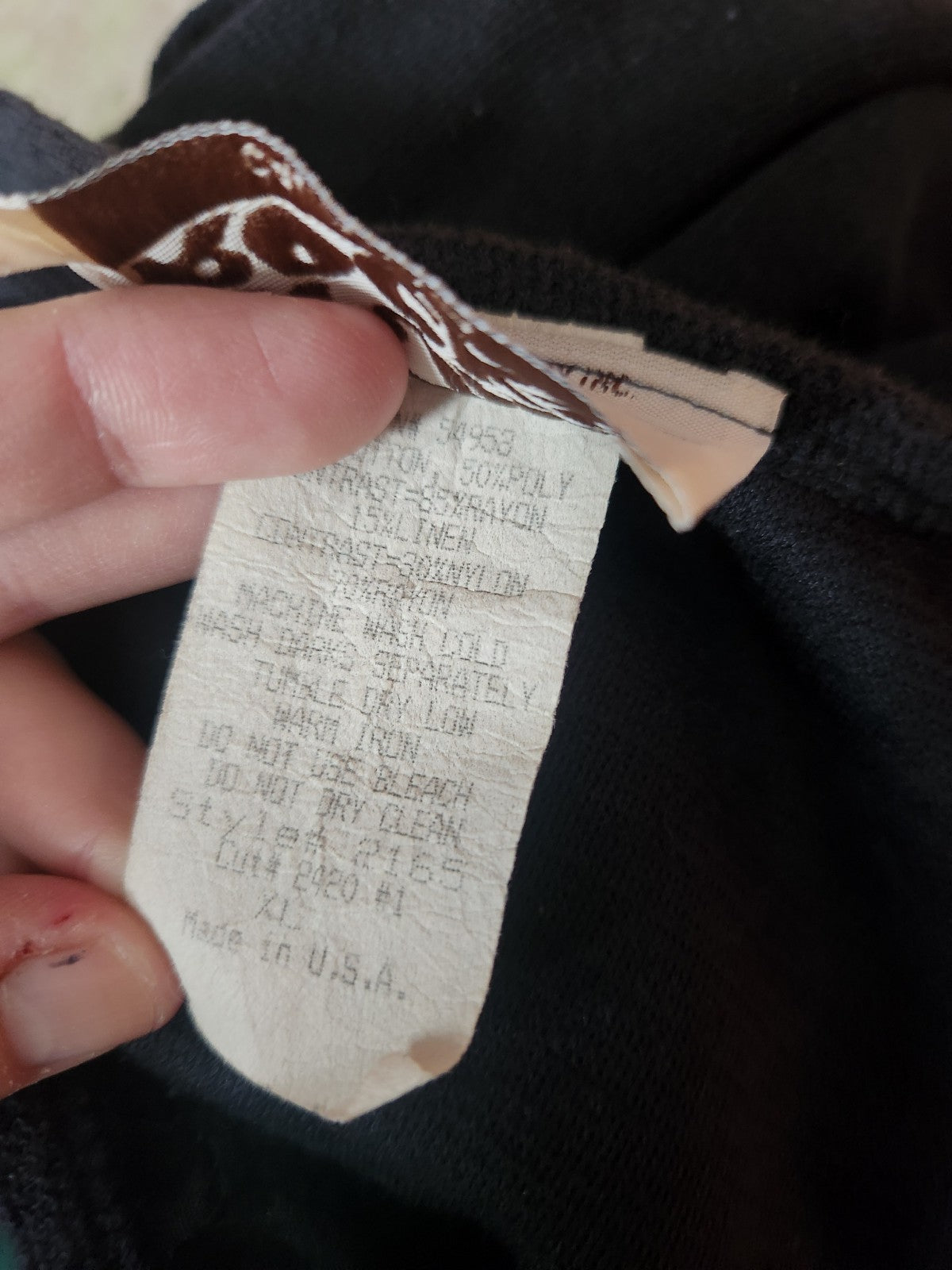 Tagged an XL and shown here on a small. Fits like a large, typical of vintage.