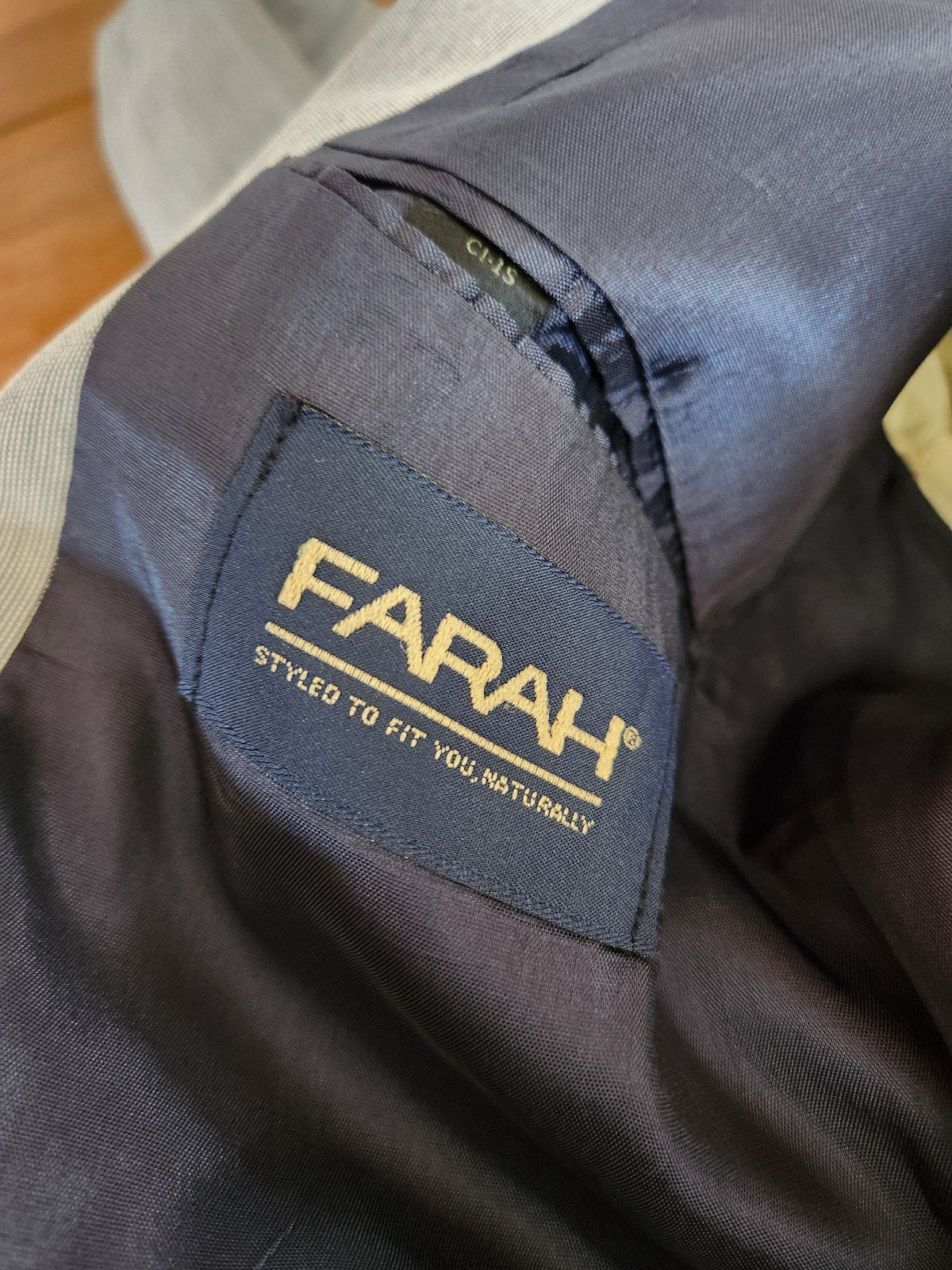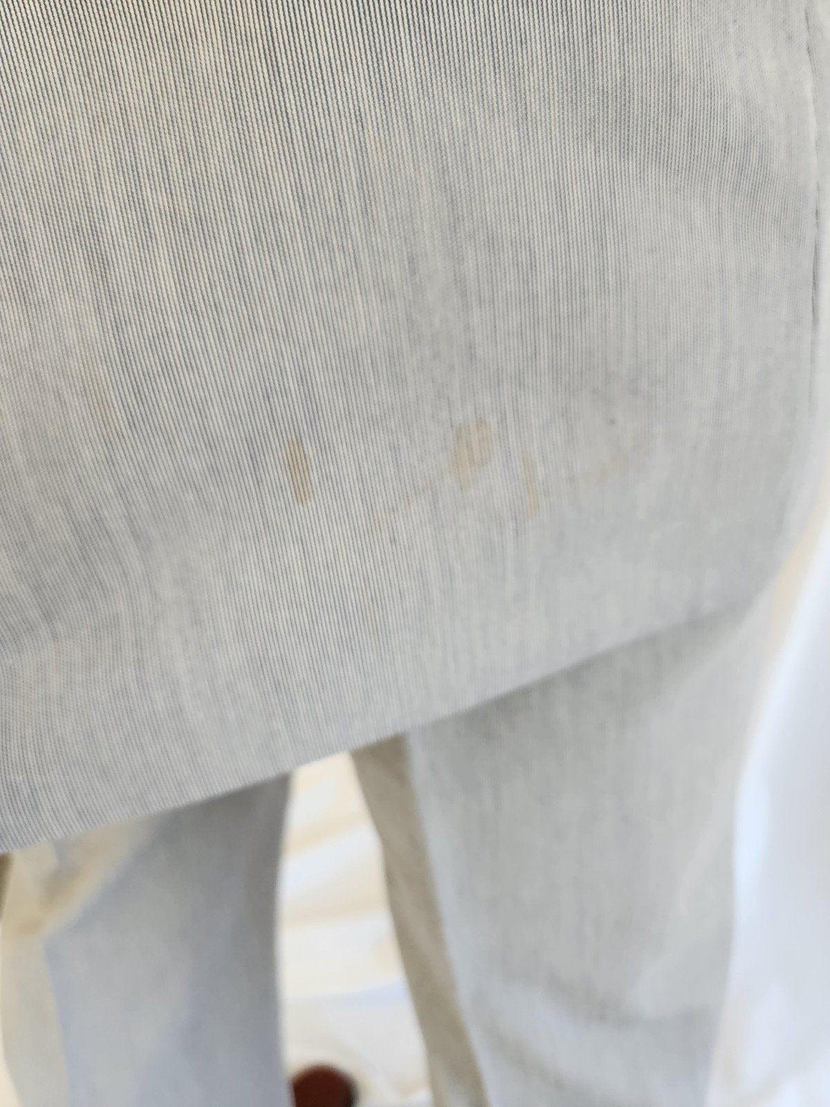 This lightweight summer suit has a couple spots that need professional cleaning but I feel will clean up fine. Priced to allow for dry cleaning budget. My town no longer has a dry cleaner.