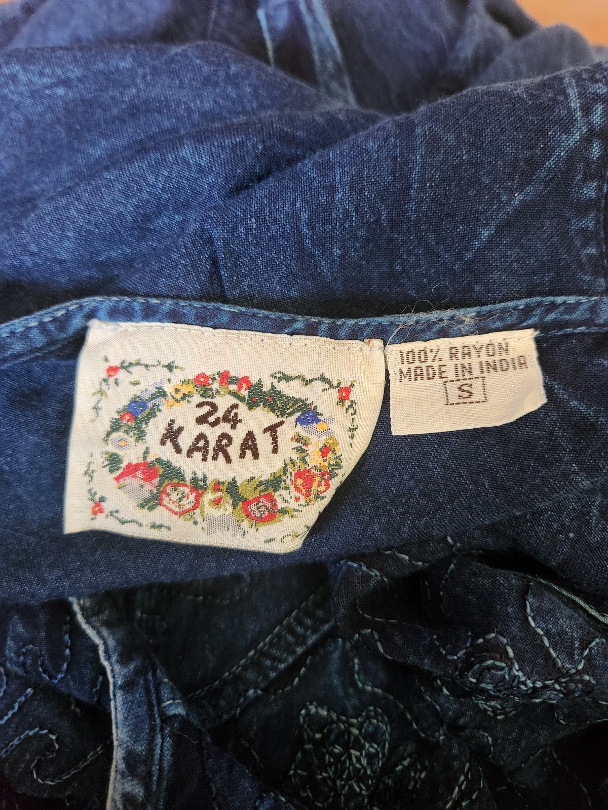 This pretty dress proves you can still look witchy and 90s even in hot weather. The only flaws are the two white areas on the front. These did not change or improve with washing so I'm not sure what the issue is.