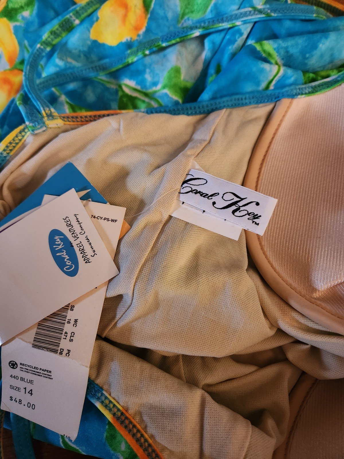 This adorable suit, shown here with a black camisole underneath, is new with tags.