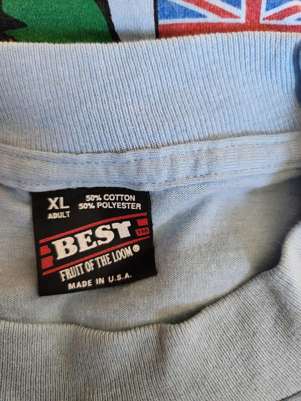 This tee is in great structural condition but has visible marks and stains that did not come out with treatment.
