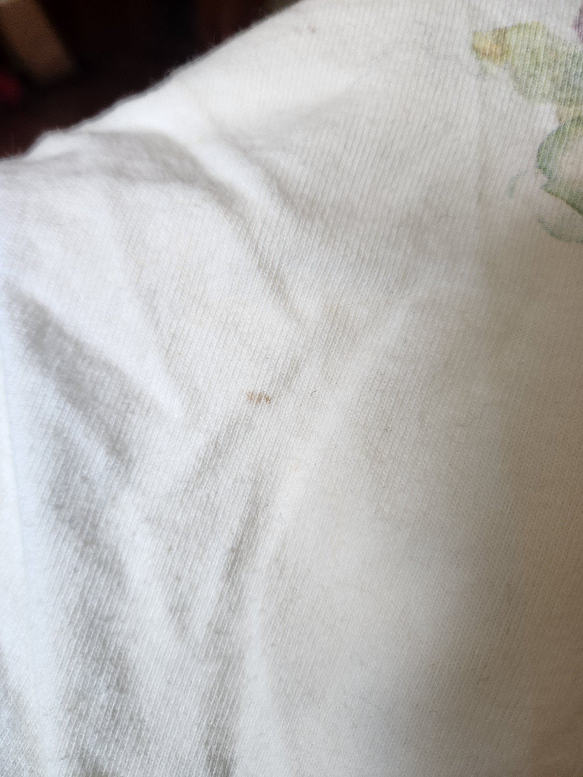 This heavy tee is almost a tee and sweatshirt combo. In good condition but does have one small spot that did not come out with treatment.