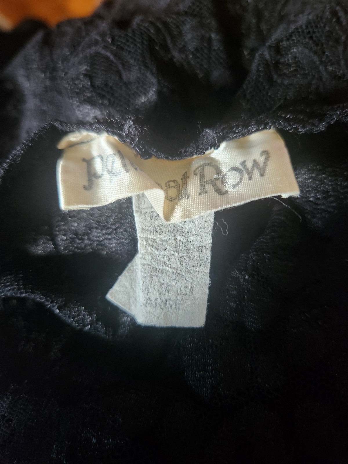 Tagged a large and shown here on a small. Fabric has lots of stretch. This may fit more like a medium as is typical of vintage.