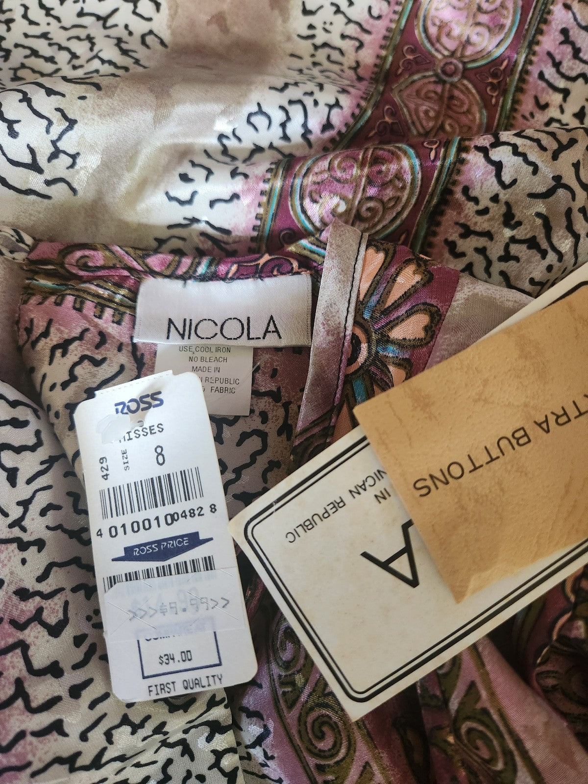 90s Deadstock Whimsigoth Mauve and White Blouse