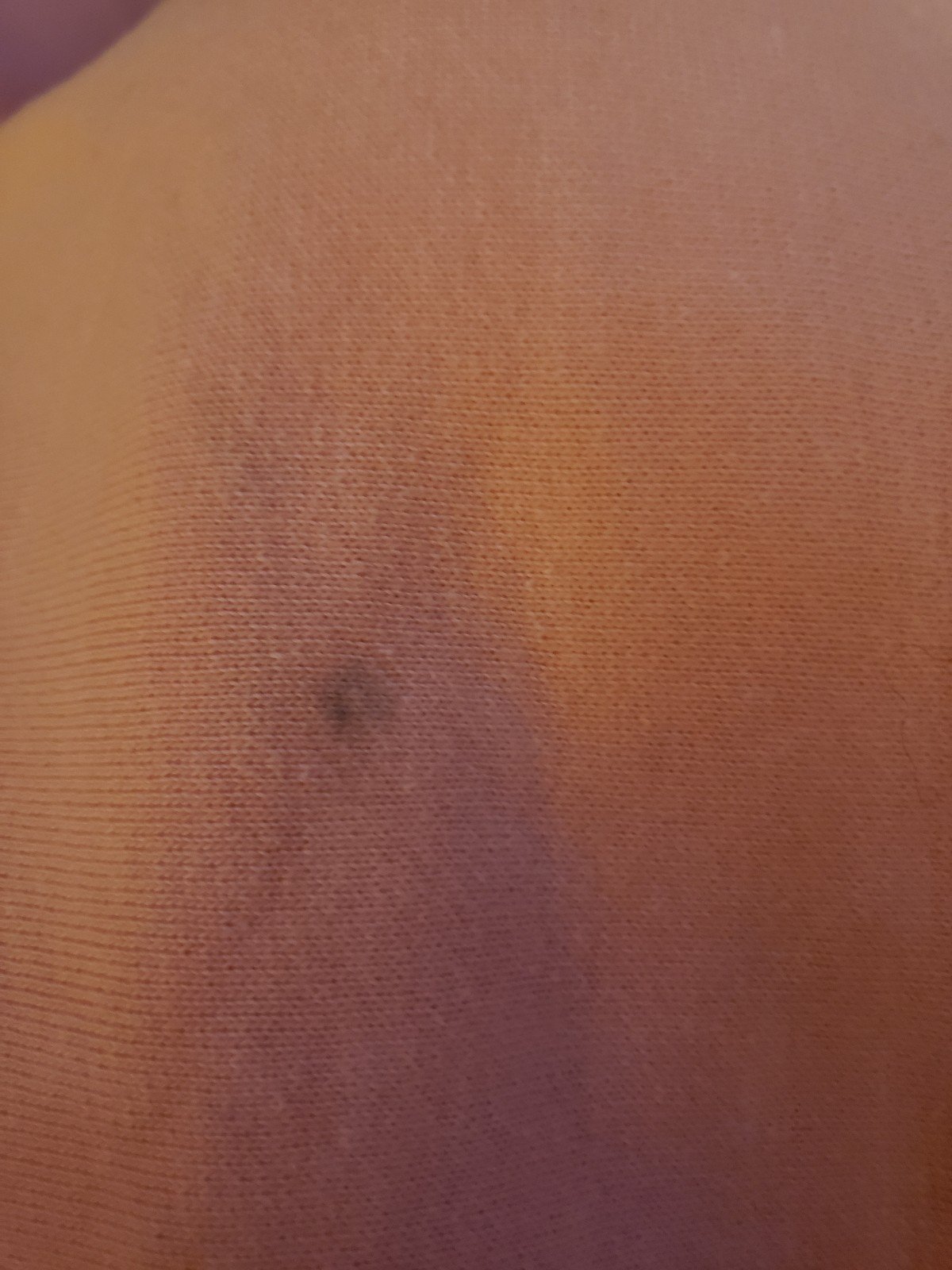 This cozy sweatshirt is like new except for the small Gray spot on the front that did not come out in the wash. I have not specifically tried to treat it as I was hesitant about fading the Pink dye around it as well.