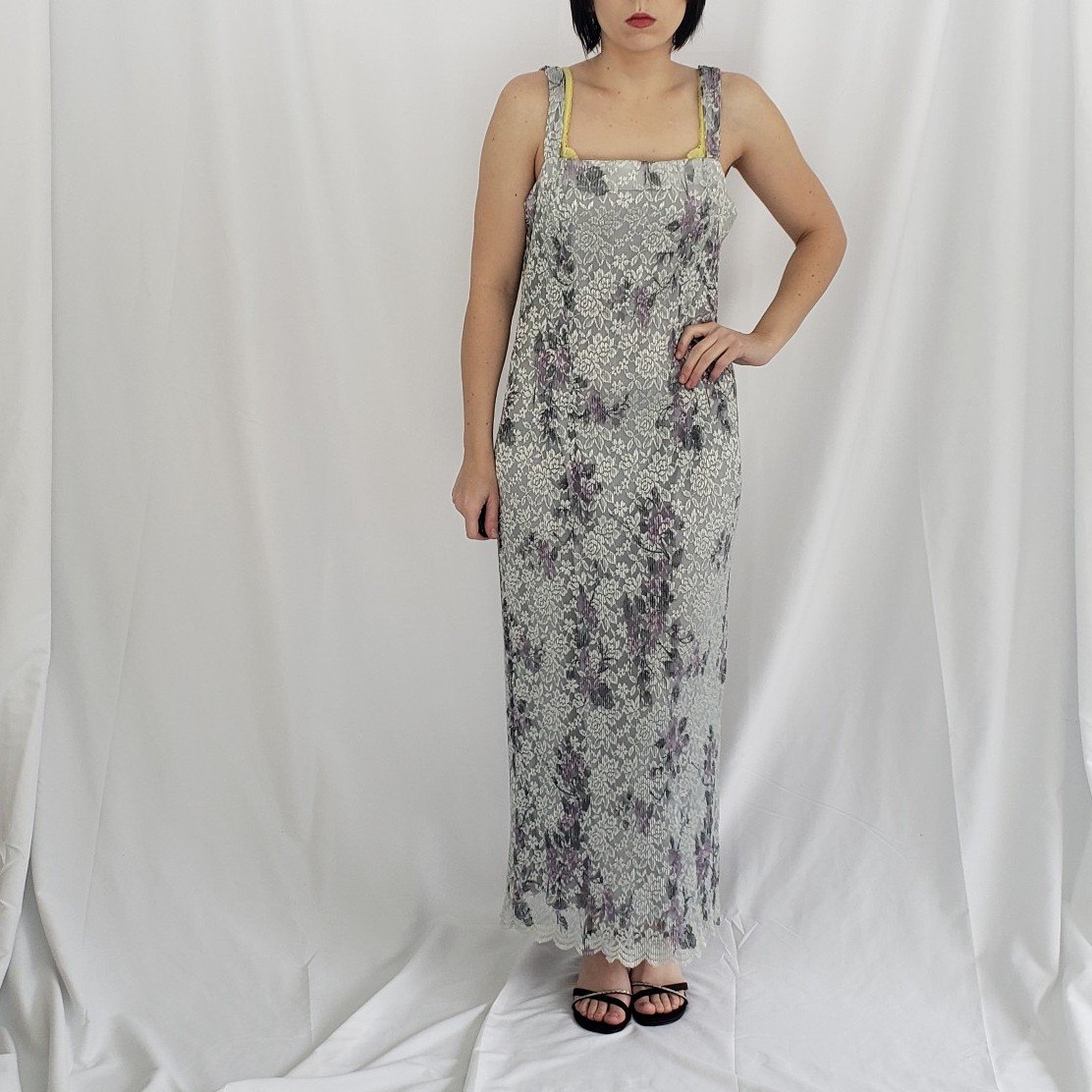 90s/Y2K Deadstock Silver Floral Dress with Jacket