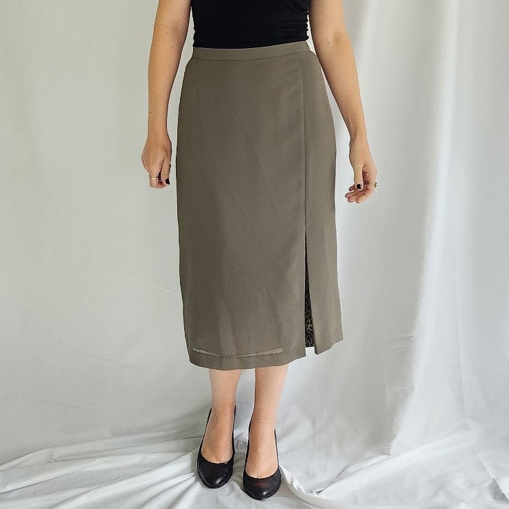 Y2K Olive Green and Leopard Print Skirt Set