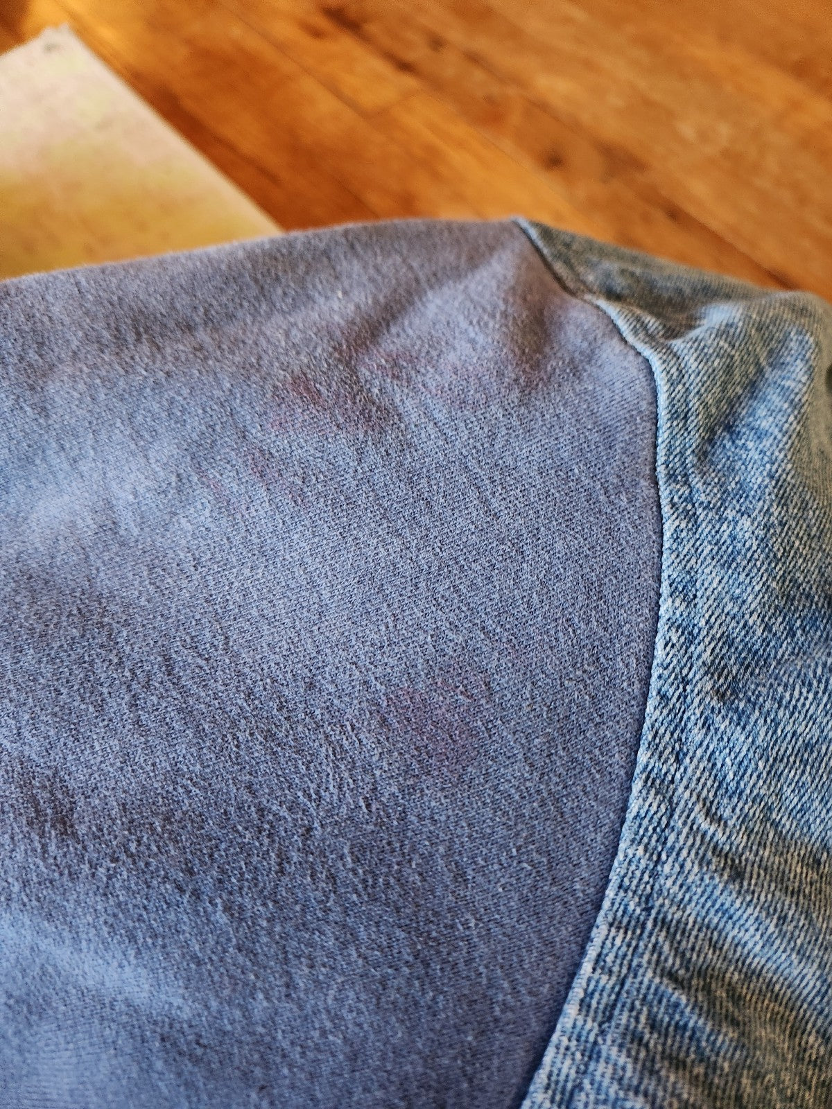 This cool jacket is in very good condition with a light stain on the shoulder as shown.